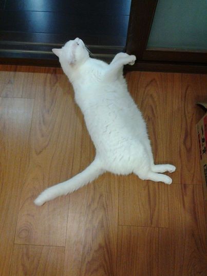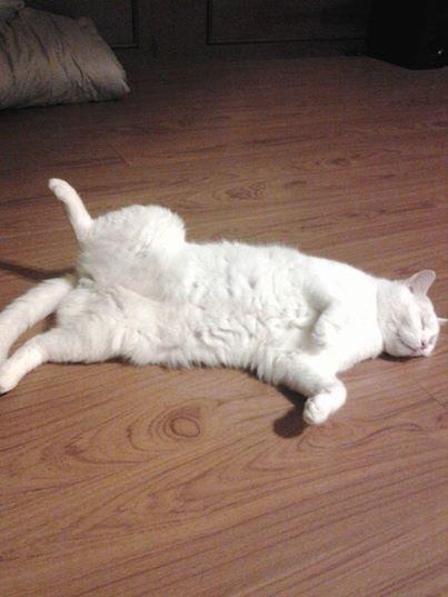 每當阿華田兩眼無神放空,然後慢慢到處睡,而且腳開開用力睡時,就表示天氣真的熱了!