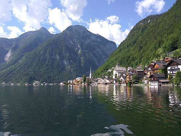 在還未到哈修塔特之前,便從電視上得知,有遊艇出租給遊客遊湖的服務,於是到了哈修塔特的隔天,我們租了兩艄遊艇,一艄一小時20歐元,真的非常便宜,而且很好操作。由湖中往岸上拍照,又是一種不同的感覺,所以來到哈修塔特一定要來體驗。