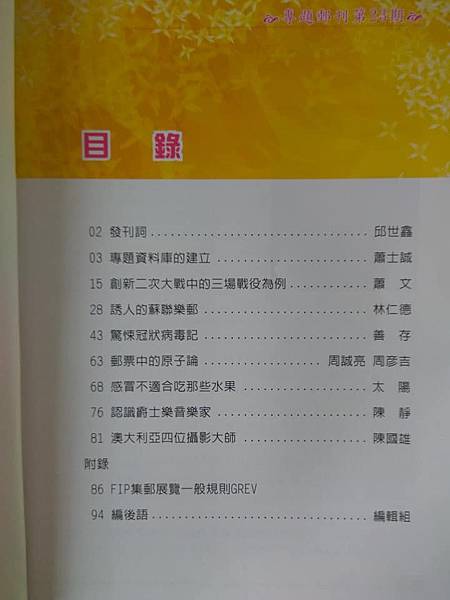 專題郵刊第23期於民國110年3月14日出版,全書共96頁,有八篇文章,共印製200本,工本費一本350