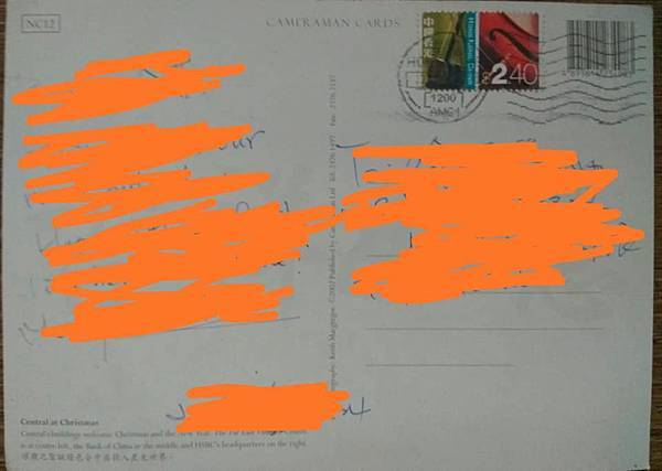 香港離台灣很近,飛機飛行90分鐘就到,只要有三天假期就可以去旅遊的國家(地區),對香港的印象是很擁擠,很吵鬧的地區(我總認為香港人講話好像是在吵架?)餐廳的服務生態度不是很好(如果有香港朋友看到請見諒?)個人也只去過香港一次,主要還是去吃美食!明信片是內人的朋友所寄,圖案是香港的中環,相信大家都知道這個地區,不需要再介紹ㄌㄜ