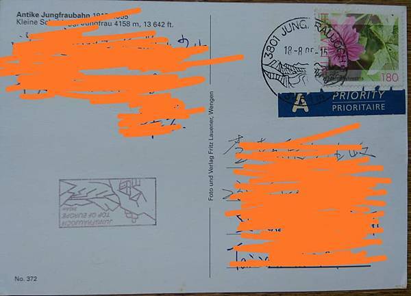 瑞士少女瑞有歐洲屋脊之稱,也是到瑞士必遊的景點,個人是沒有到那旅遊,那年小姨子到瑞士旅遊,由上面寄這ㄇㄟ