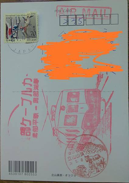 日本立山黒部是非常知名的地點,雖然我沒有去過,聽說風景不錯,朋友到那旅遊,寄來這枚像白狐的明信片給