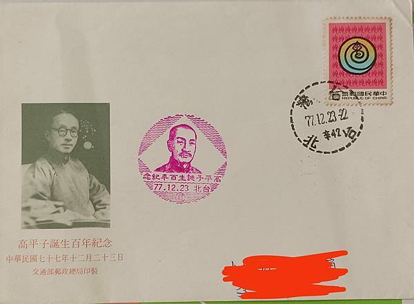 高平子(1888年12月23日—1970年3月23日)江蘇金山(今屬上海)人,中國天文學家,近代中國天文學開拓者。因欽佩東漢天文學家張衡(張平子),故自號平子。民國77年12月23日,中華郵政公司(當時還是郵政總局),發行高平子誕生百年紀念首日封,當年除發行首日封外,另鐫刻紀念戳一枚,然而郵政總局卻錯鐫刻戴傳賢先生肖像,在當時引起集郵轟動。(戴傳賢先生為黨國大老,也是蔣緯國將軍的生父)