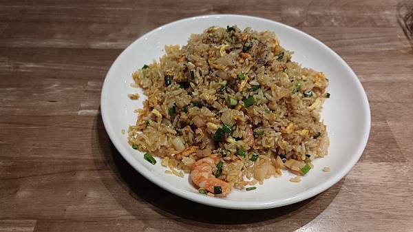 蝦仁炒飯,飯是粒粒分明,味道很香,蝦仁還蠻大,但飯的品質沒台灣好,吃起來米不是飽滿的那種