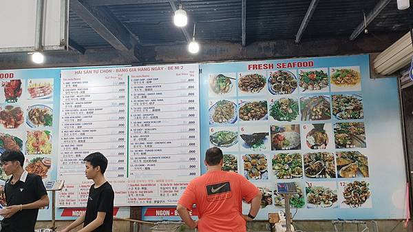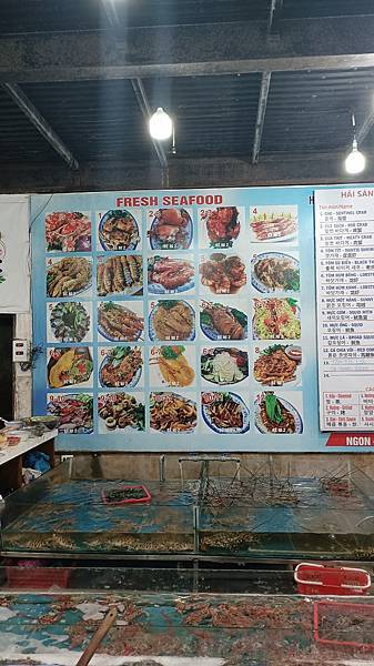 到峴港一定要吃海鮮,這間在美溪海灘附近,是接近當價格比台灣便宜很多,台灣是以斤計價,這裡是用公斤,而且價格直接的貼出,點餐時要先跟服務人員說清楚,因為店裡非常多的人,點完餐他們會再確認一次。他們料理的方式,味道跟台灣不一樣,用的醬料是比較重些,但海鮮真的非常的新鮮扎實,真的非常的值得。