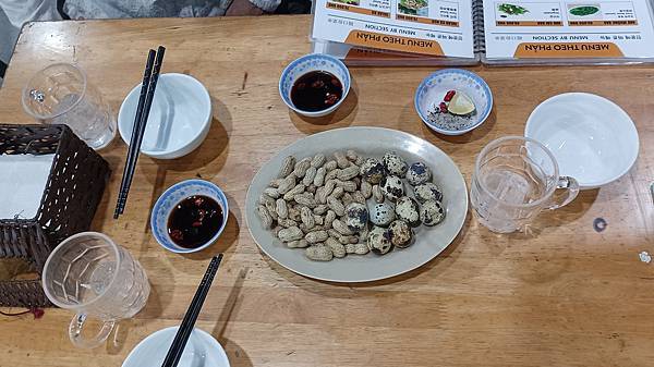這間餐廳每桌都會放花生及鳥蛋,都是要錢的,可以不要