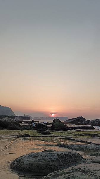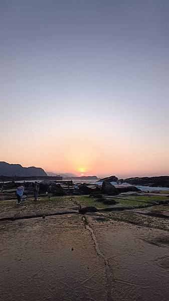 基隆大坪海岸是八斗子魚港附近看落日的地點,平常退潮時也是適合小孩來此捕捉岩石間的魚類好去處,每天日落時,總會有人到此拍落日,特別是假日時,當夜晚要來臨時,海岸上就非常多的人,架起了腳架,各自找自己喜歡的角度,而拿手機的人,就可以一直移動找各種不同角度拍攝,在炎熱的海岸邊,尤其是當海風吹起時,真的蠻舒服的,住北部的朋友,有時間來基隆旅遊時,別錯過這裡