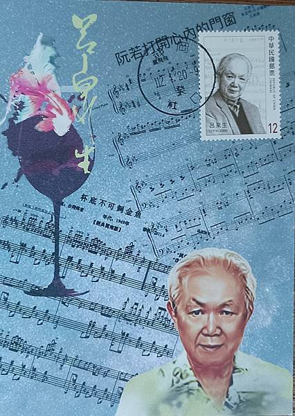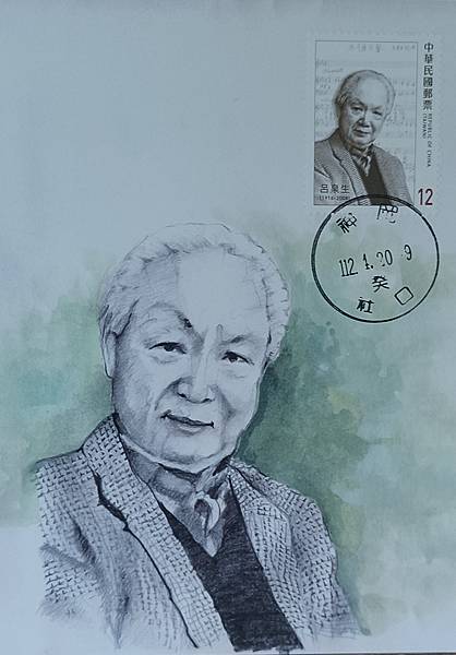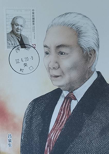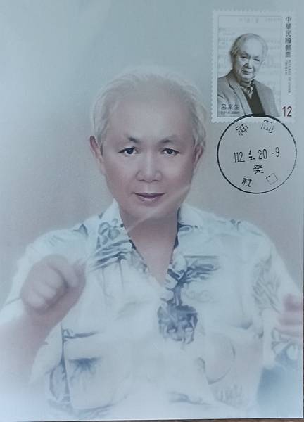 民國112年4月20日,發行的台灣近代作曲家郵票中,呂泉生先生也是被選為郵票的主角,在介紹中提及,呂泉生先生是作曲家、合唱指揮家及音樂教育家,為採集民謠並將之藝術化的先驅之一,曾任享譽中外之榮星兒童合唱團團長兼指揮,獲頒行政院文化獎等殊榮。有關此次所製作的呂泉生先生的原圖卡,自然片應該是非常少,只能買幾枚專印片來製作,只有五枚而已,這五枚的原圖卡,分別是迷路狐版兩枚,信鴿版一枚,不知名版兩枚,從片圖之中或郵票中,就可以感受到呂泉生先生的威嚴,就好像他對音樂的嚴謹一般!原圖卡銷蓋民國112年4月20日,首日神岡社口郵局戳,呂泉生先生出生地為現在台中市神岡區三角里,社口郵局應該是比較接近的郵局。(圖1-圖5)