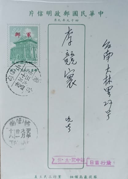 民國49年9月30日,台中市寄台南軍郵片,軍郵票屬於優待性質,必須由金門前線交寄才有優待,而本件由台灣本島寄出,不具優待,所以本件應該以當時明信片郵資0.8元計算,因此本件需補足郵資0.4元,再加倍罰為0.8元,共需補足0.8元郵資,但本件並未以欠資